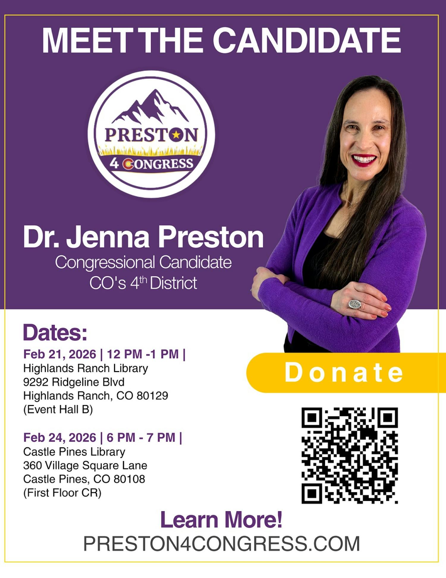 - Dr. Jenna Preston Signals Next Steps and Continued Commitment to Colorado’s 4th DistrictPRESS RELEASE